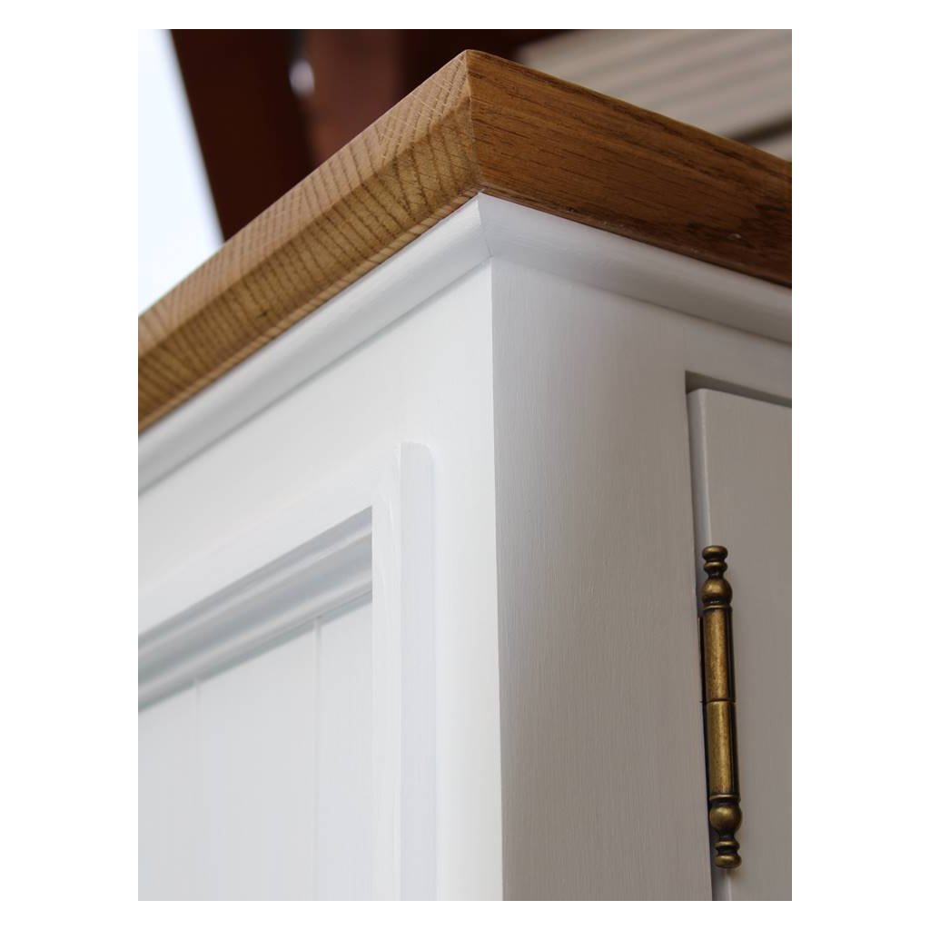 Masivní vitrína PROVENCE je prosklená vitrína vyrobená z masivního bukového dřeva, které je ošetřeno akrylovou barvou v krémovém odstínu, a z masivního dubového dřeva (horní deska), které je ošetřeno lakem. Díky spojení těchto dvou druhů masivního dřeva získala masivní vitrína jedinečný vzhled, který zdokonalí veškerý interiér.