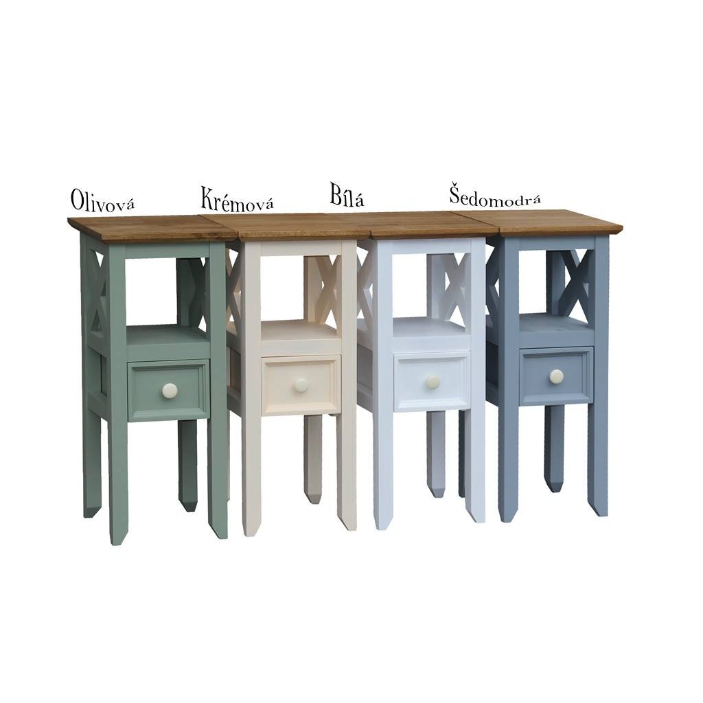 Kolekce PROVENCE to je stylový, vkusný a jemný nábytek v oblíbeném francouzském stylu. Nábytek Provence je vyroben z masivního bukového dřeva a ošetřen akrylovou barvou v bílé či šedomodré barvě. Horní hnědé částí jsou vyrobeny z masivního dubového dřeva a ošetřeny lakem. Spojením těchto dvou materiálu jsme docílili opravdu velmi efektivního vzhledu, který hned tak nikdo nepřehlédne.