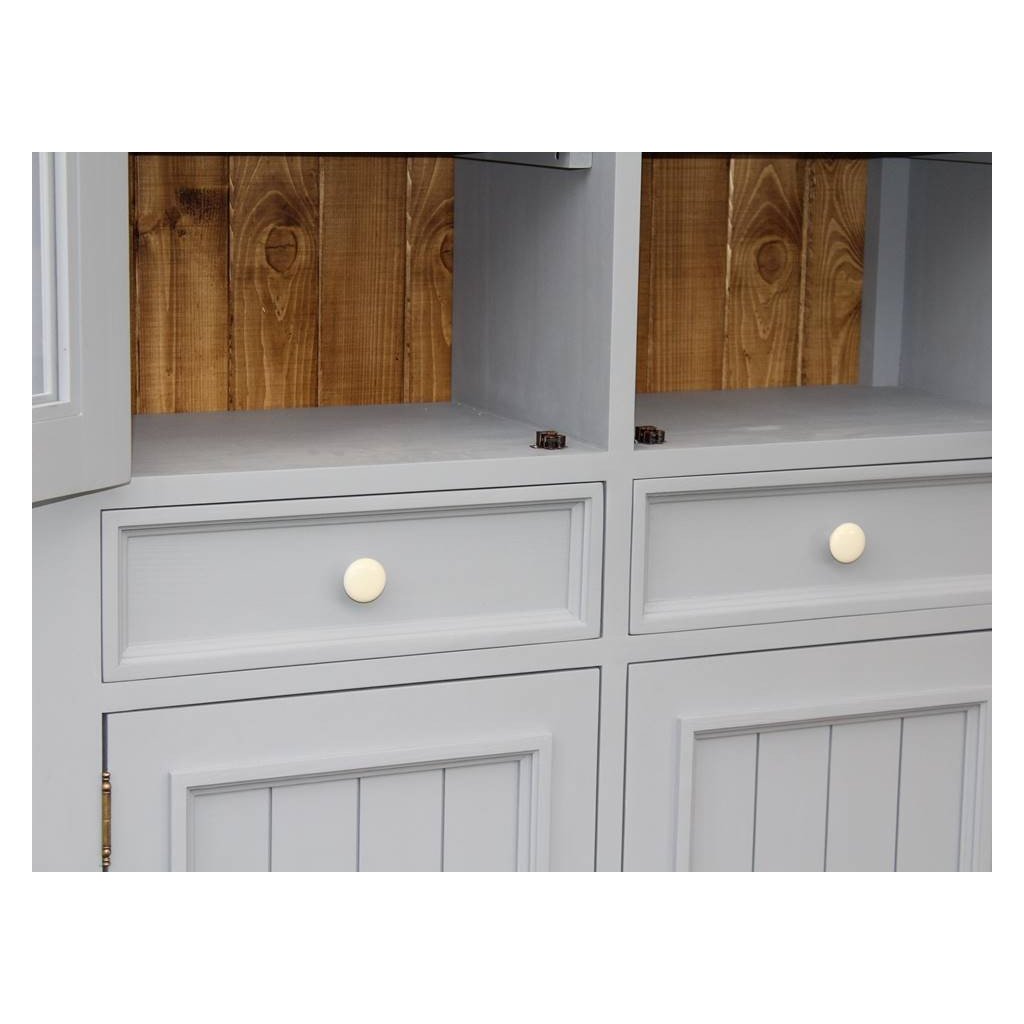 Masivní vitrína PROVENCE je spojením bukového a dubového dřeva. Dubové dřevo (horní deska) je ošetřeno lakem a bukové dřevo je ošetřeno akrylovou barvou v šedomodré barvě. Šuplík je bez pojezdu. Možnost objednání se systémem tichého dovírání (u šuplíků). Příplatek 810,- Kč (jeden pár).