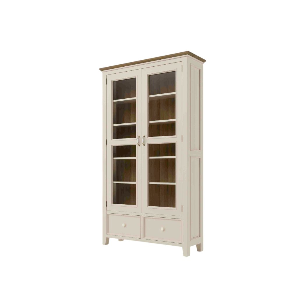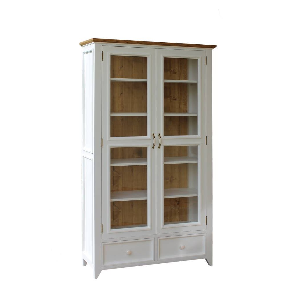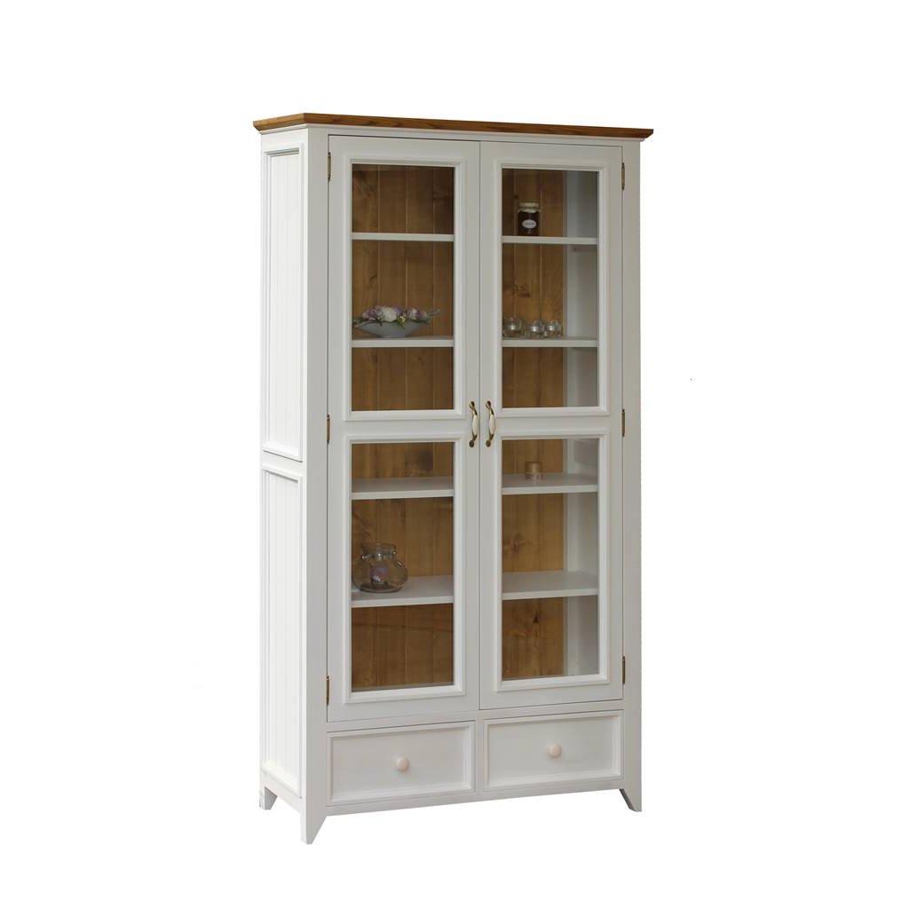 Masivní vitrína PROVENCE je prosklená vitrína vyrobená z masivního bukového dřeva, které je ošetřeno akrylovou barvou v krémovém odstínu, a z masivního dubového dřeva (horní deska), které je ošetřeno lakem. Díky spojení těchto dvou druhů masivního dřeva získala masivní vitrína jedinečný vzhled, který zdokonalí veškerý interiér.