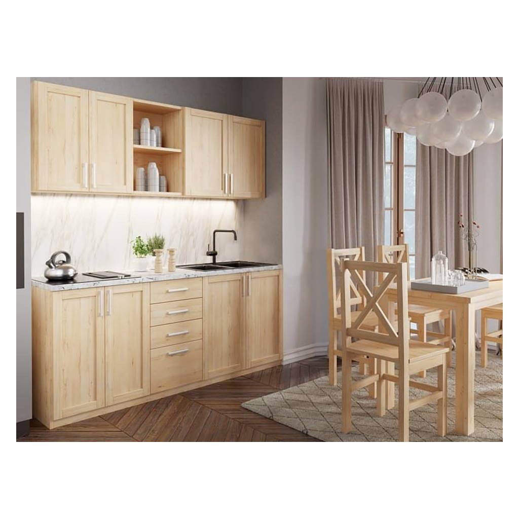 Vrchní závěsná kuchyňská skřínka DEJ46 je potřebná téměř v každé domácnosti. Je vyrobena ze 100% borovicového masívu. Pouze zadní část je tvořena ze sololitu. Výrobce klade důraz na použití minimálního množství suků.