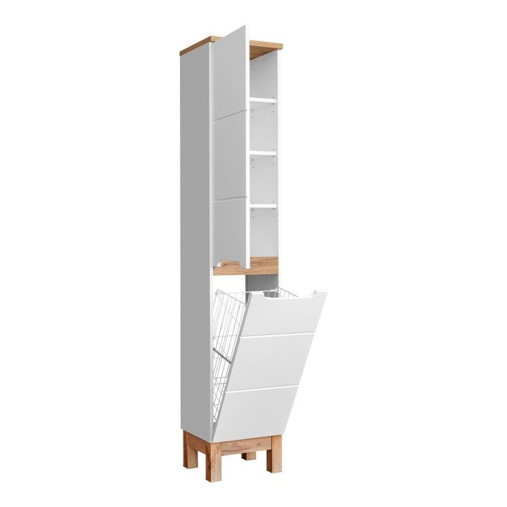 Vysoká koupelnová skříňka s košem na prádlo BALI bílá