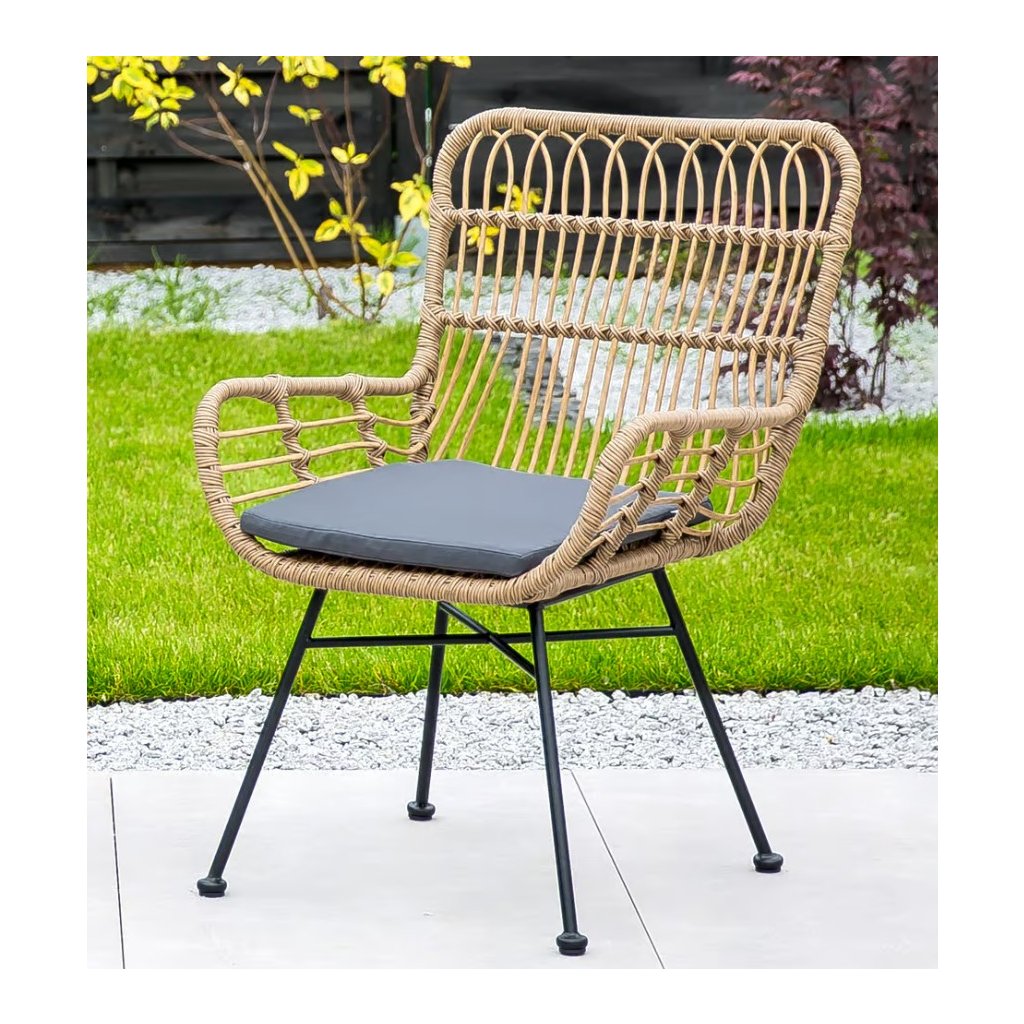 Zahradní křeslo ARISTA představuje elegantní a odolný kousek nábytku pro vaše venkovní posezení. Křeslo je vyrobeno z umělého materiálu imitujícího ratan, známého jako technoratan, který se vyznačuje vysokou odolností vůči proměnlivým povětrnostním podmínkám, jako jsou déšť a UV záření. Konstrukce křesla je zhotovena z oceli (19 x 0,9 mm a 16 x 0,9 mm), která je práškově lakovaná, což zajišťuje trvanlivost a odolnost. Díky použitým materiálům je křeslo relativně lehké, což usnadňuje jeho přemisťování a umístění na různé povrchy, zejména na rovný a tvrzený povrch.