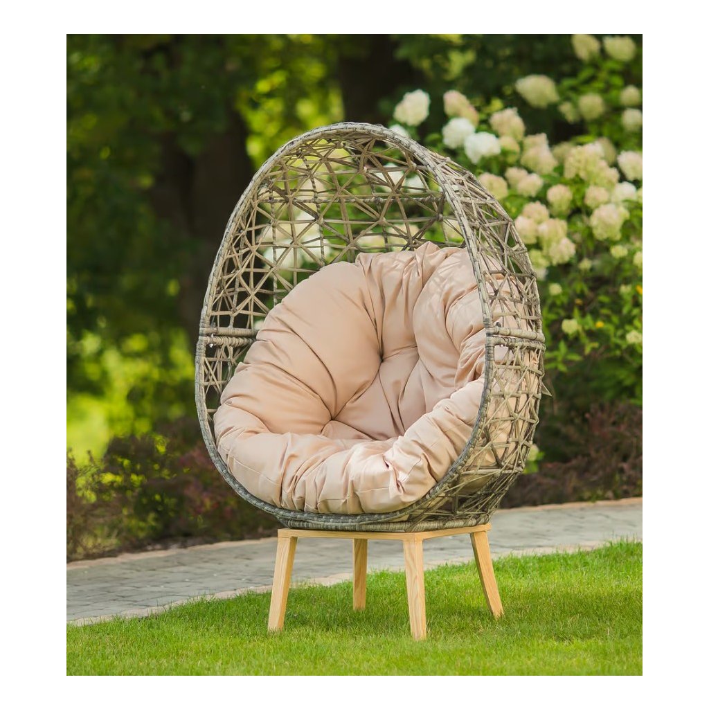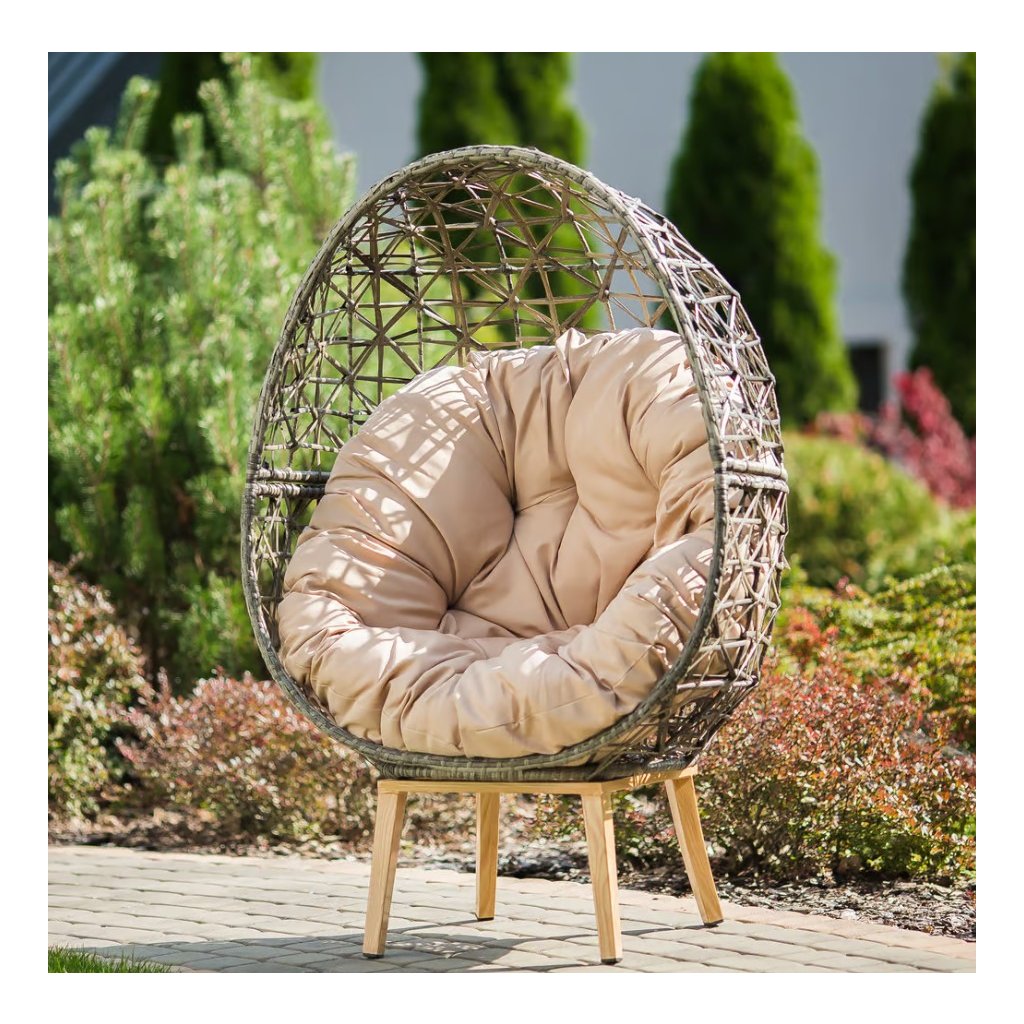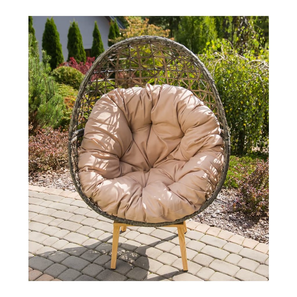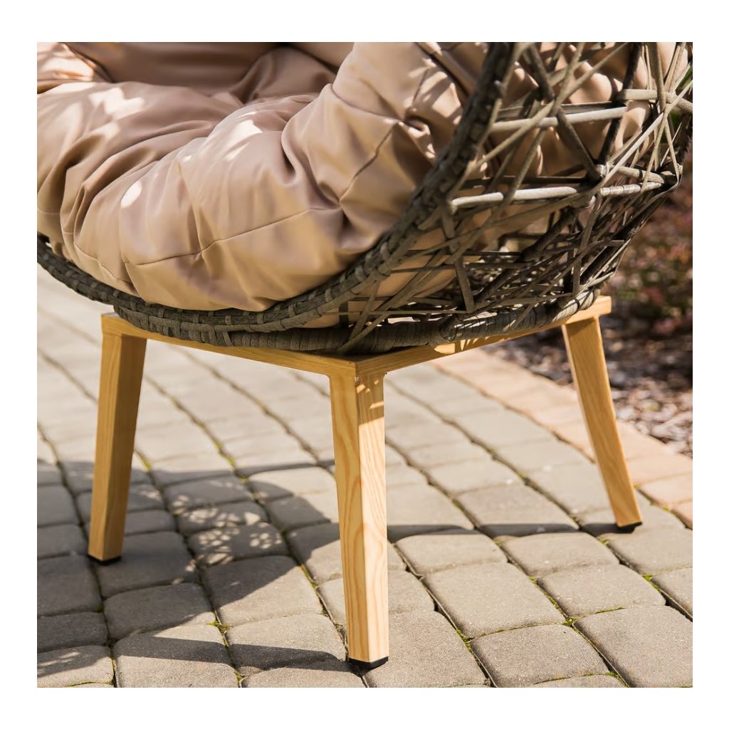 Rám sedáku je opleten technoratanem - je to materiál, který se velmi podobá přírodnímu ratanu, ale je mnohem odolnější vůči měnícím se povětrnostním podmínkám (déšť, UV paprsky) a mechanickému poškození. Křeslo má pohodlné polštáře z polyesterové tkaniny, které lze v případě potřeby jednoduše otřít vlhkou houbou a malým množstvím pracího prášku. Nohy křesla jsou ocelové, imitující dřevo. Kostra židle je práškově lakovaná, což umožňuje odolnější efekt a zvyšuje odolnost proti korozi. Případné znečištění pletiva z technoratanu a ocelových prvků lze snadno odstranit vlhkým hadříkem.