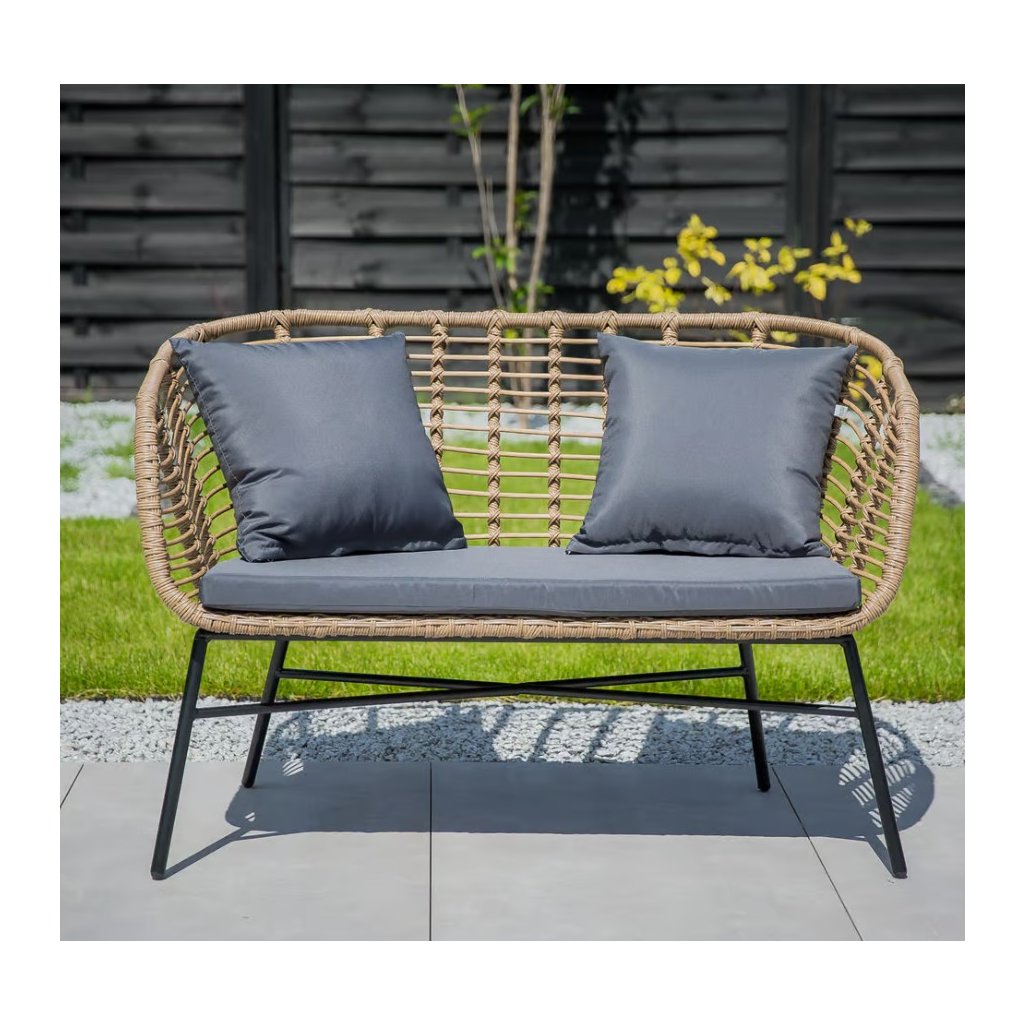 Zahradní lavice Sebastian přináší elegantní a odolné řešení pro vaše venkovní posezení. Vyrobeno z umělého materiálu imitujícího ratan, tzv. techno ratanu, tato lavice nabízí vysokou odolnost vůči měnícím se povětrnostním podmínkám, jako jsou déšť a UV záření.