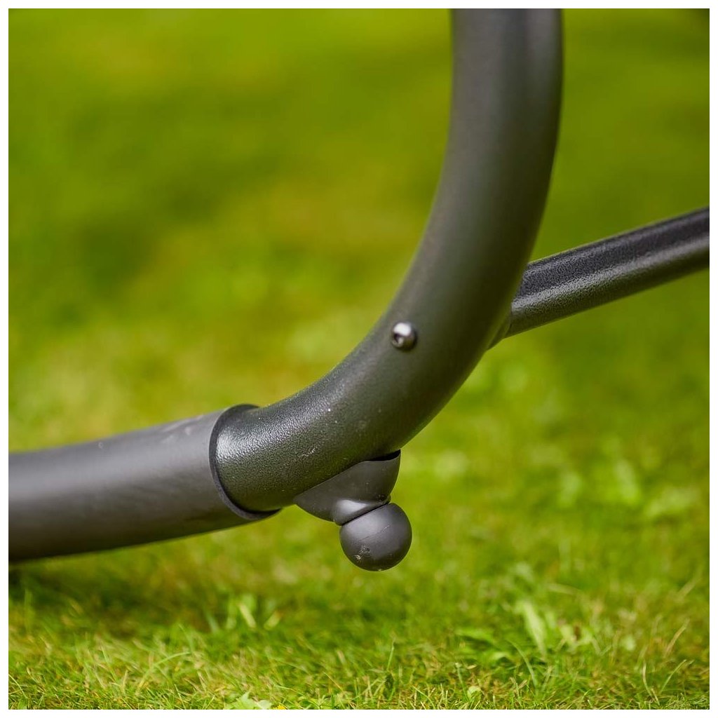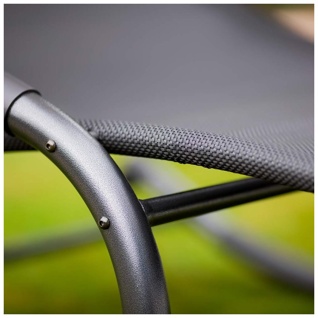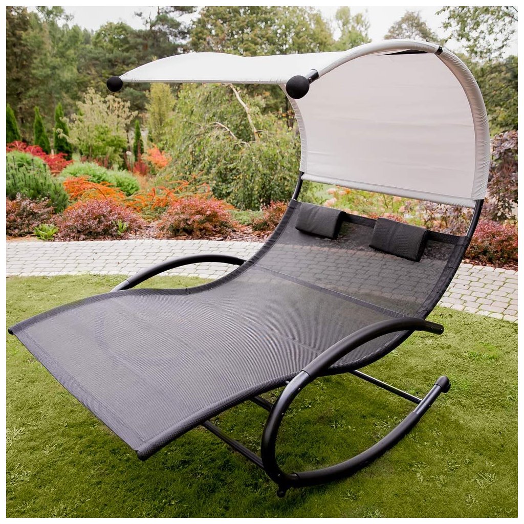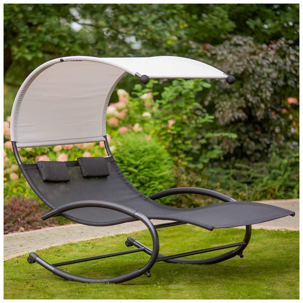 Díky ergonomicky tvarované ocelové konstrukci si můžete užívat plynulého houpání, zatímco velká ležící plocha se dokonale přizpůsobí tvaru těla, což zaručuje maximální pohodlí. Pro dodatečný komfort jsou k dispozici opěrky hlavy a stříška, která chrání před přímým slunečním zářením.