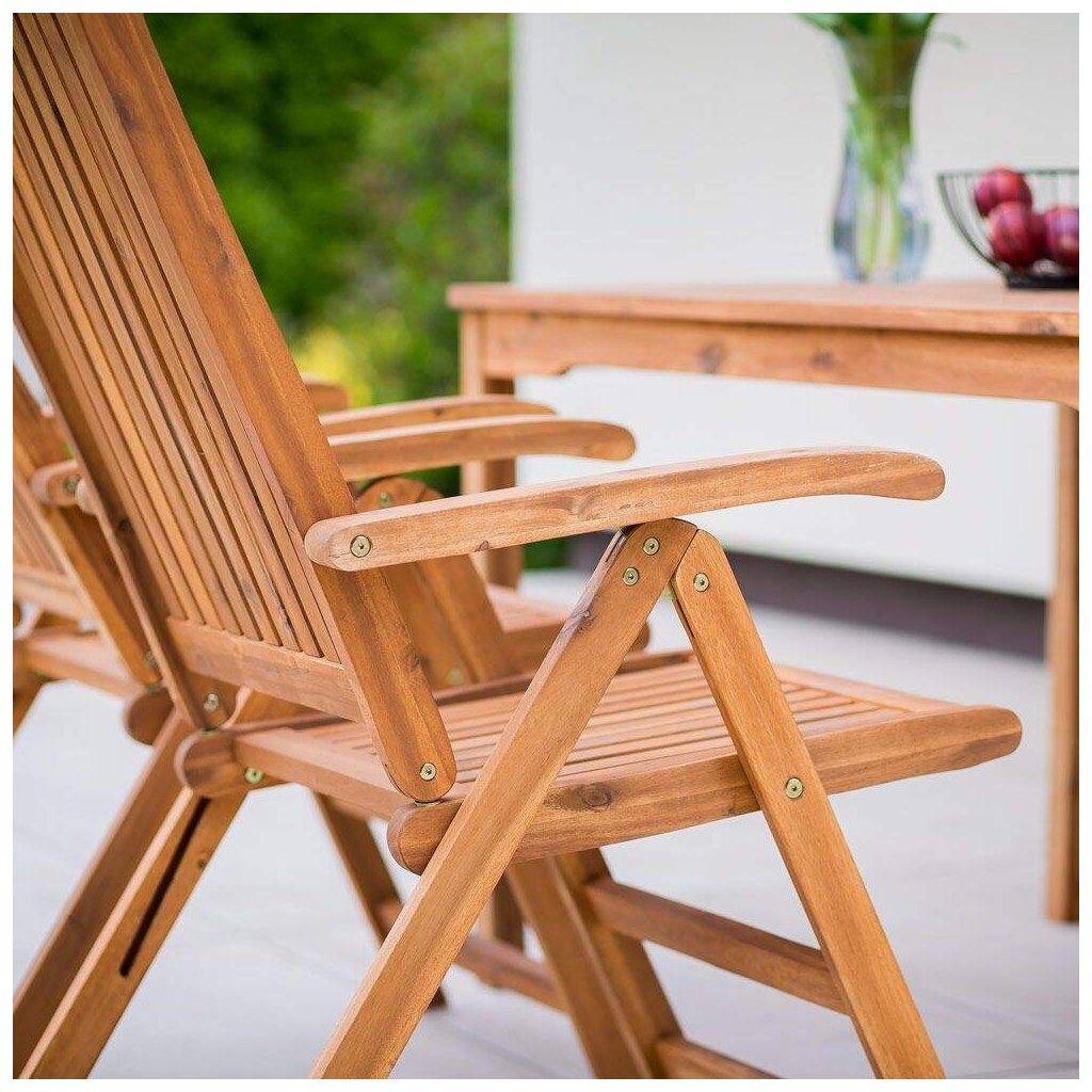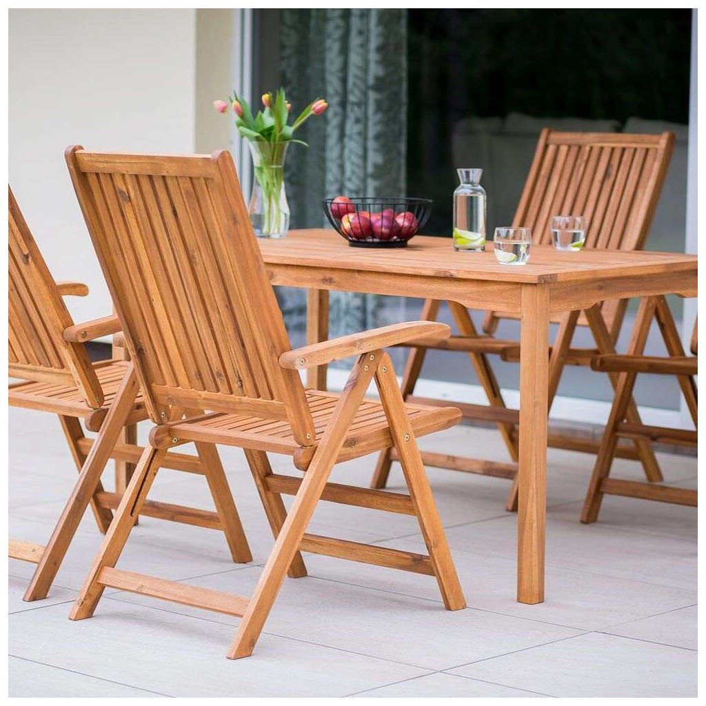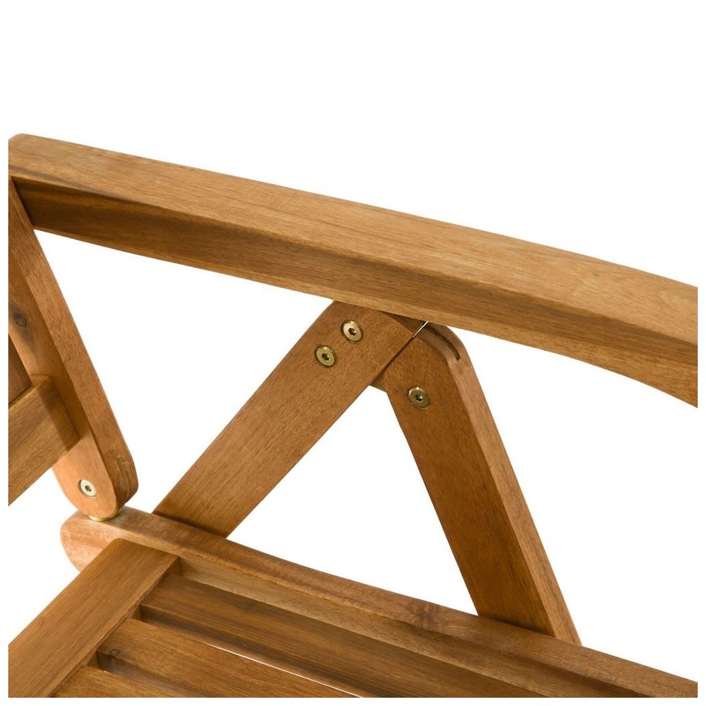 Zahradní rozkládací křeslo ERIK dřevěné zaujme svým provedením z kvalitního akátového dřeva, které se skvěle začlení do přírodního prostředí zahrady. Každý detail tohoto křesla prošel ošetřením olejem na dřevo, což zvýrazňuje jeho přírodní krásu. Pohodlí zajišťuje opěradlo sedadla s pěti polohami, které umožňují ideální nastavení pro relaxaci pod širým nebem. Tento nábytek je navržen speciálně pro venkovní použití, přičemž maximální zatížení křesla dosahuje 110 kg.
