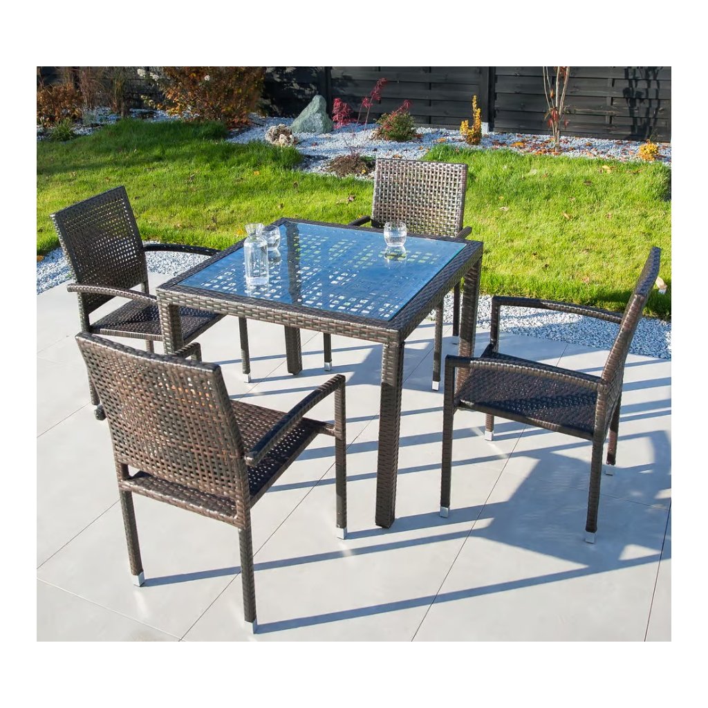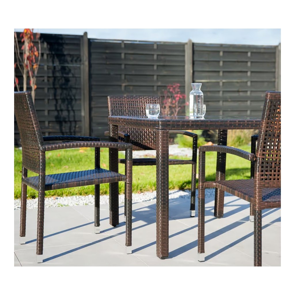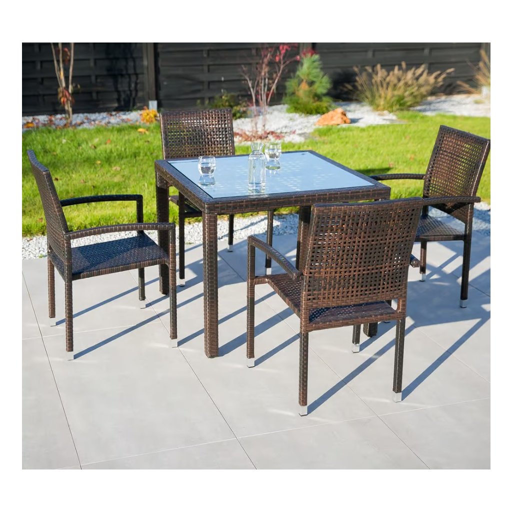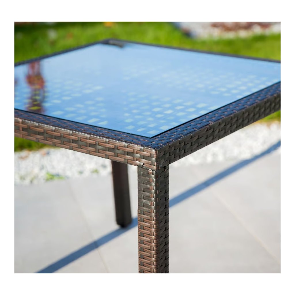 Zahradní stůl NARCIS o rozměrech 90 x 90 cm je optimální volbou pro venkovní prostředí, ať už se jedná o zahradu nebo celoroční zimní zahrady. Stůl je vybaven hliníkovým rámem a povrchem z ratanu vysoké kvality. Jeho syntetický materiál připomíná přírodní ratan, ale přináší výrazně vyšší mechanickou pevnost a odolnost vůči nepříznivým povětrnostním podmínkám, jako je vlhkost, nečistoty a UV záření. Díky hliníkové konstrukci je nábytek lehký a snadno přenosný. Stůl zaručuje pohodlnou a nenáročnou údržbu a jeho horní deska je vyrobena z tvrzeného skla o tloušťce 5 mm.