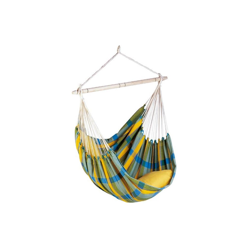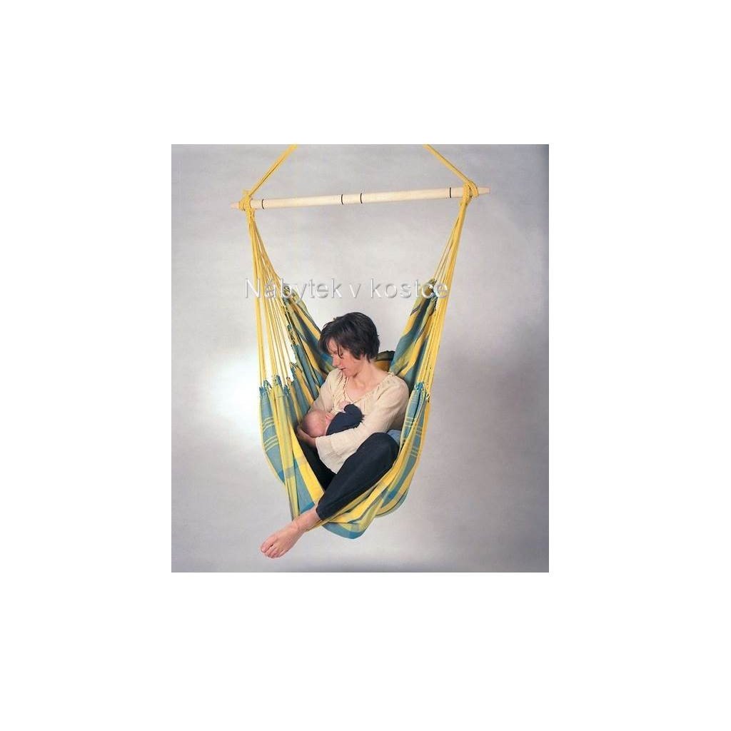 Závěsné houpací křeslo Brasil lemon nabízí dostatek prostoru pro lenošení všem dospělým, může se však stát i oblíbeným místem pro děti, anebo skvěle poslouží maminkám jako kojící koutek.