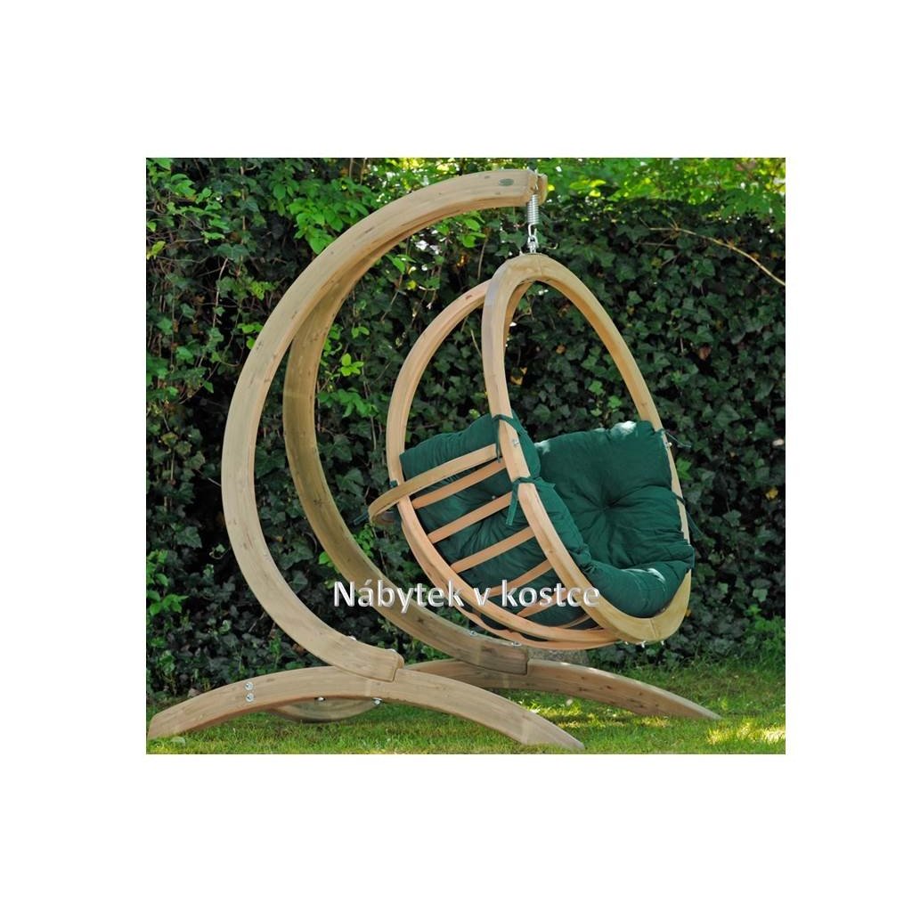 Závěsné houpací křeslo Globo chair verde je křeslo ve tvaru polokoule pečlivě vyrobené ze smrkového a lepeného profilu, který zaručuje znamenitou pevnost a odolnost křesla. Dřevo je ošetřeno impregnaci proti dřevokazným houbám, škůdcům a povětrnostním podmínkám. Je možné jej dále povrchově upravovat (olejovat, mořit, lakovat).